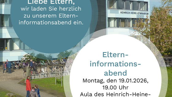 Liebe Eltern, wir laden Sie herzlich zu unserem Elterninformationsabend am Montag, den 19.01.2026 um 19 Uhr in unsere Aula ein.