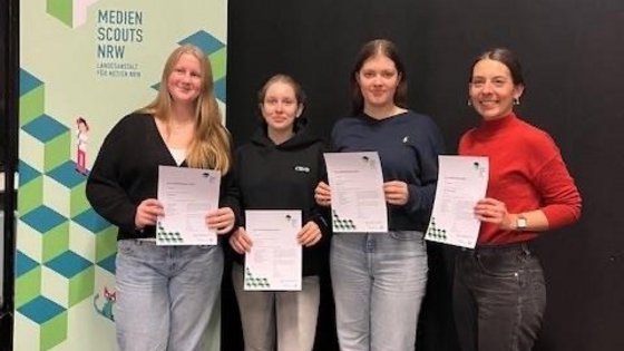 Gestern wurden die Zertifikate der Landesanstalt für Medien NRW an die Medienscouts Pia Schöffler, Paulina Roy und Greta Wilch aus den Jahrgängen 9 und 10 verliehen.