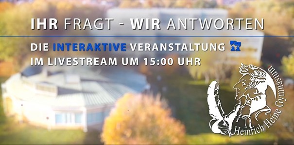 Auch unseren Informationsvortrag zum Übergang von der Grundschule zum Heinrich-Heine-Gymnasium, den wir für Mittwoch, 15.12.2021, geplant hatten, sagen wir aufgrund der aktuellen Infektionslage ab, aber wir hoffen, diesen am Mittwoch, den 19.01.2022, um 19:00 Uhr nachholen zu können. Wir möchten die Informationsveranstaltung gerne in Präsenz durchführen. Sollte das auch im Januar nicht möglich sein, werden wir ein Distanzformat wählen.