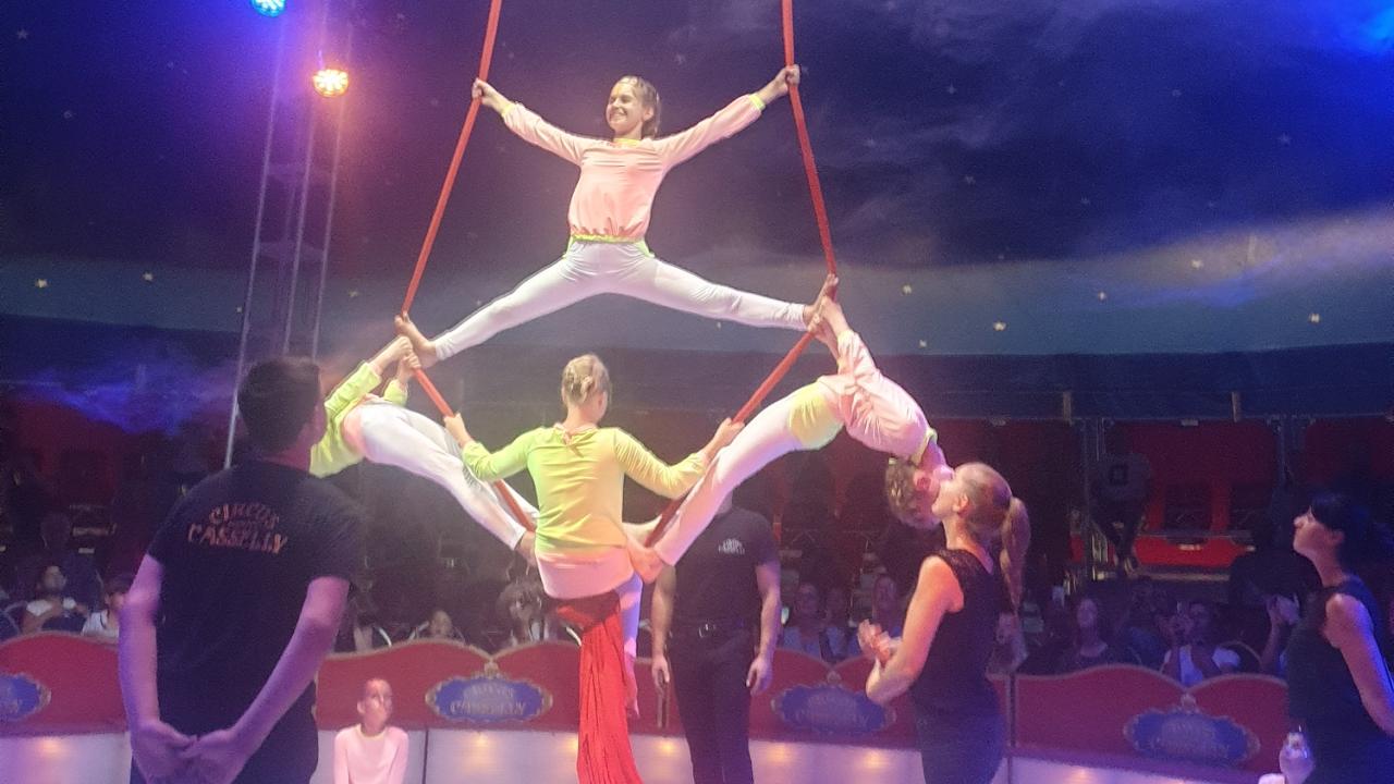 Im Zeitraum vom 15. August bis zum 17. September 2022 hatten alle Klassen der Jahrgangsstufe 6 der Stadt Bottrop die Möglichkeit, mit der Familie des Circus Casselly in sechs Workshops alles zu lernen, was für eine echte Zirkusaufführung nötig ist. Jeweils anderthalb Tage lang trainierten immer drei Klassen gleichzeitig in ihren Workshop-Gruppen. Insgesamt über tausend Schülerinnen und Schüler probierten sich am Trampolin, Römischen Tuch oder als Clown, Fakir, Akrobat und Jongleur aus. Dass vor allem das Erkennen und Erproben der eigenen Stärken wichtig war, bestätigt eine Schülerin: „Ich fand das Zirkusprojekt super. Das Schöne war, dass man die Sachen erst einmal ausprobieren und sich dann für etwas entscheiden konnte.“