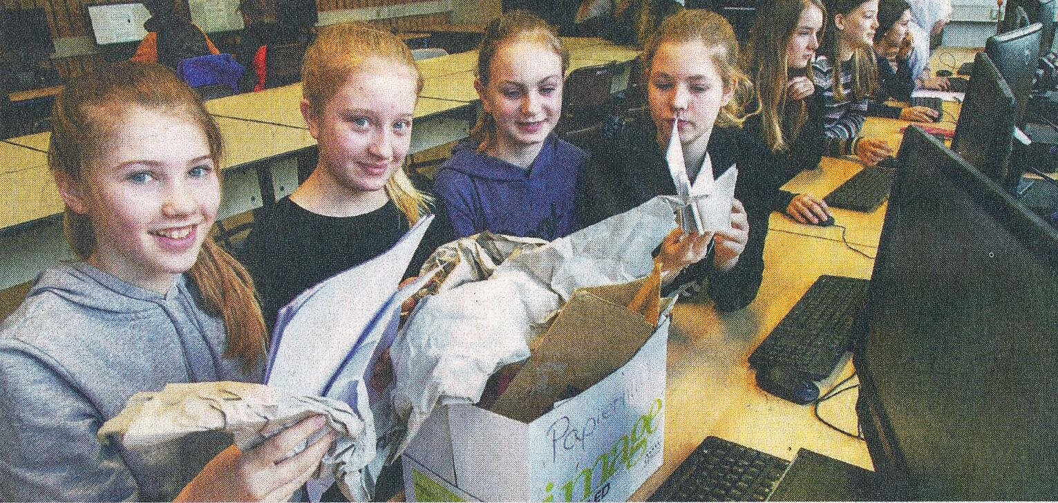Noch besser als Müll zu trennen, ist es Müll zu vermeiden. Bei einem Schulprojekt haben Schüler der achten Klassen daher genau untersucht, was für Arten von Müll am Heinrich- Heine-Gymnasium anfallen. „Durch die Analyse unseres Müllaufkommens in der Schule haben wir herausgefunden, dass sehr viele Stifte und leere Tintenpatronen im Müll landen – jede Menge Plastikmüll!“, berichtet Lehrerin Burmester. „Da wollten wir ansetzen.“