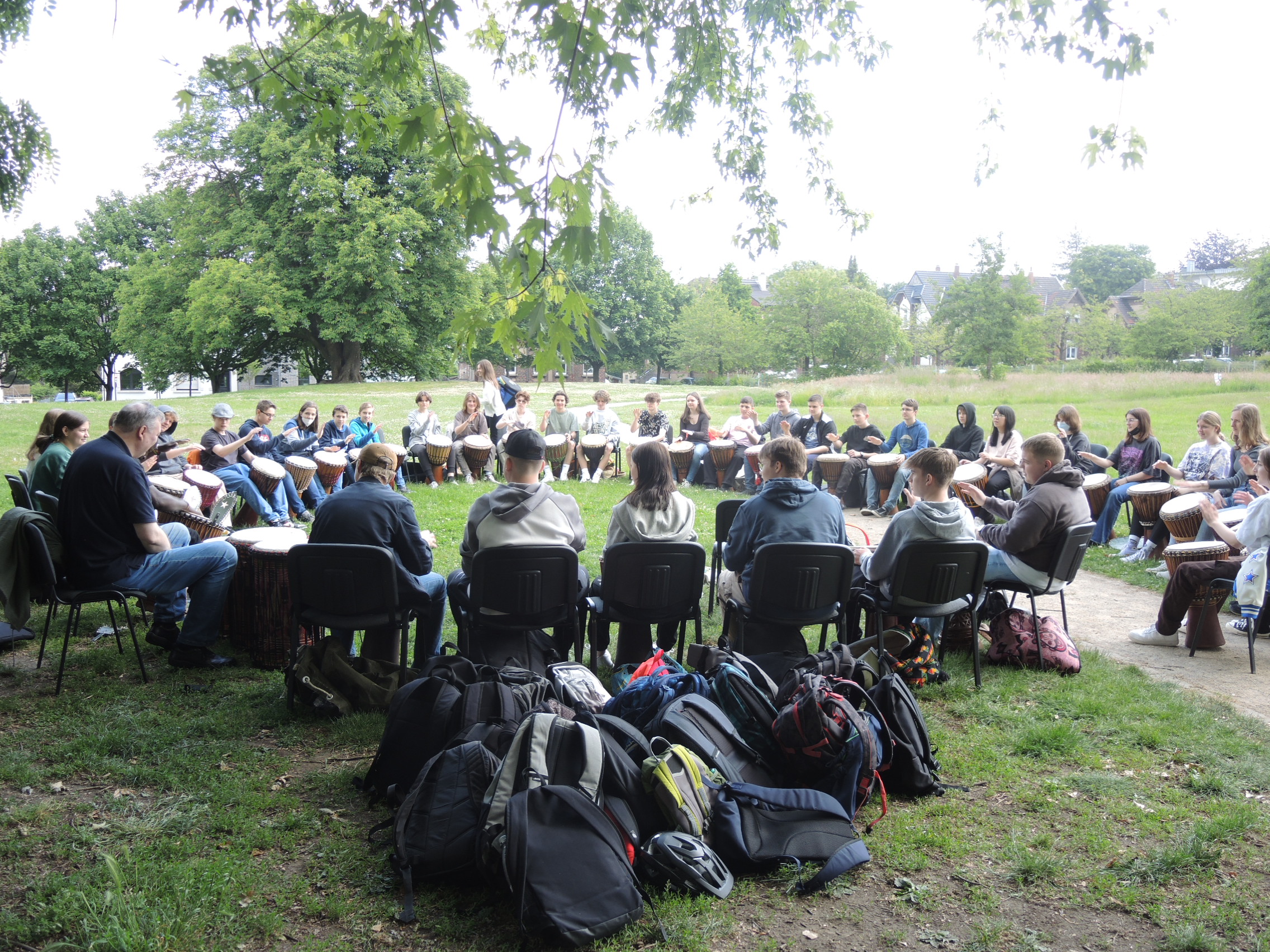 Nachdem beide Schülergruppen gemeinsam die Show der Physikanten in unserer Aula besuchten hatten, ging es bei bestem Wetter zum Trommelworkshop und Pizzaessen um einander kennen zu lernen. Am Nachmittag besuchten unsere Gäste die Zeche Zollverein und den Tetraeder um am nächsten Tag den Moviepark in Kirchhellen.