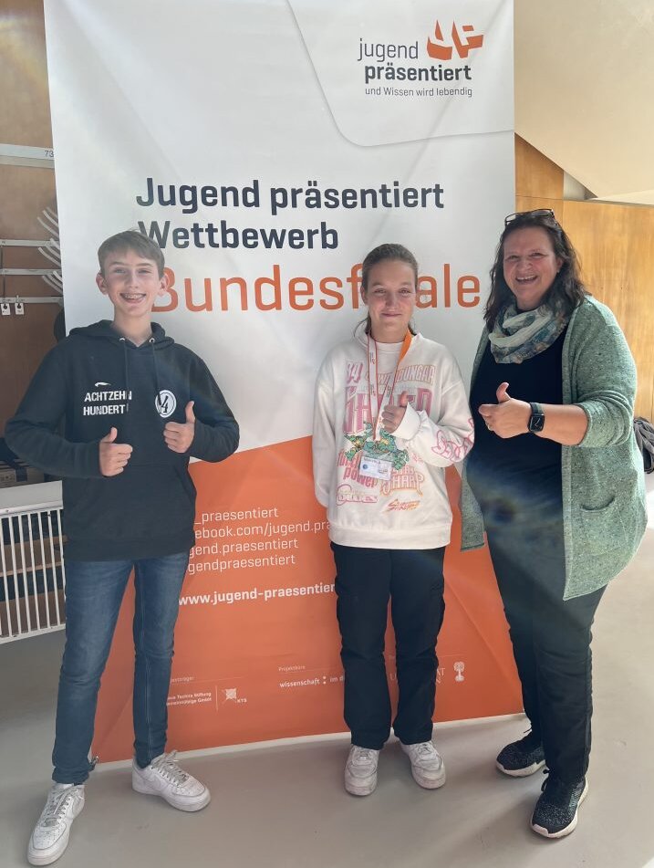 Marlene Barb und Tim von der Haar (beide Klasse 8d) haben am Bundesfinale Jugend präsentiert mit ihrem Vortrag zum Thema „Klimastress“ am letzten Wochenende, 16.09. – 18.09.2022, in Berlin teilgenommen.