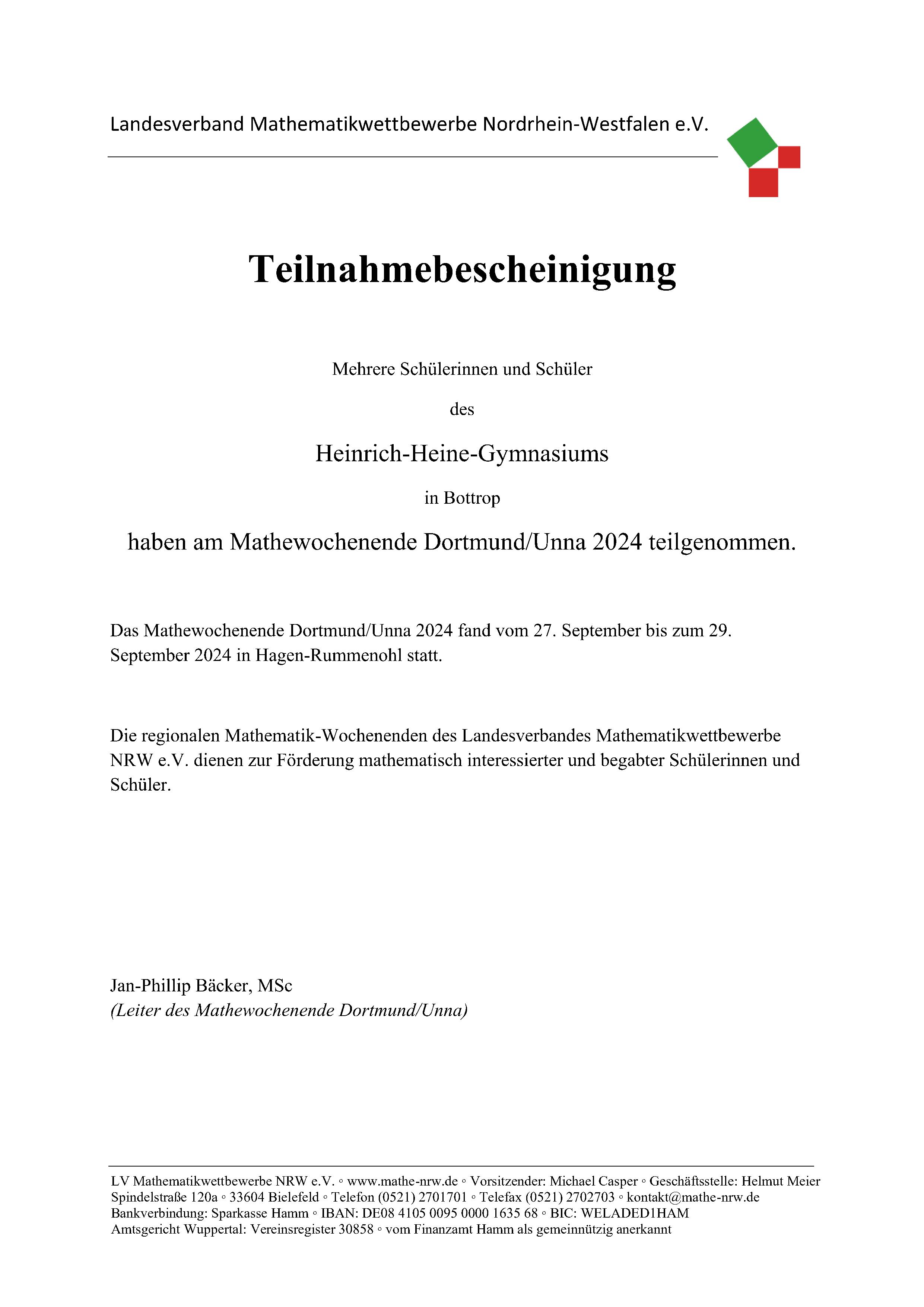 Erfolgreiche Teilnahme am Mathematikwochenende!