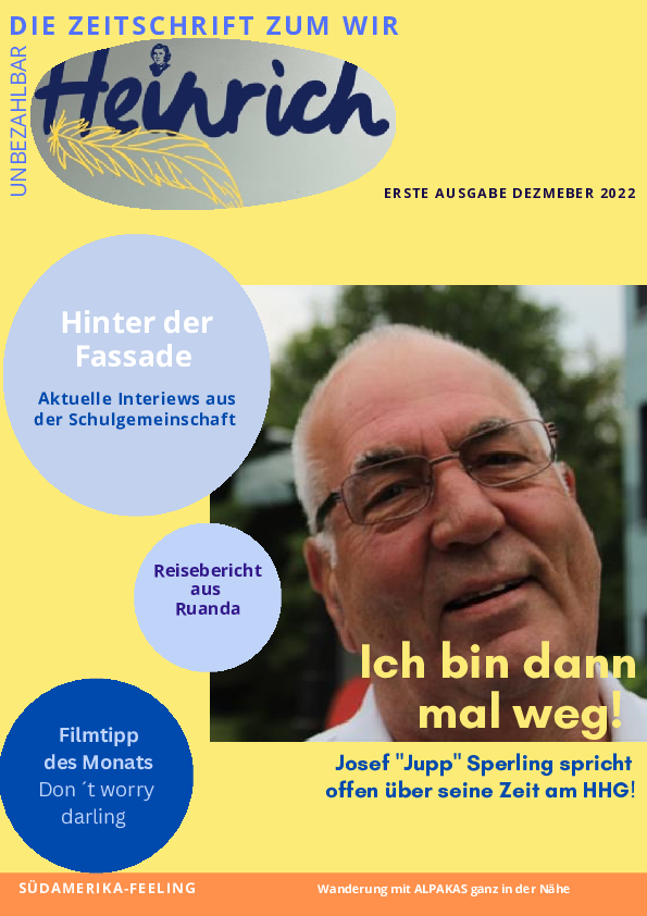 das Schülerzeitungsteam ist sehr stolz, euch heute die erste Ausgabe des „Heinrich – Die Zeitschrift zum WIR“ vorstellen zu dürfen.