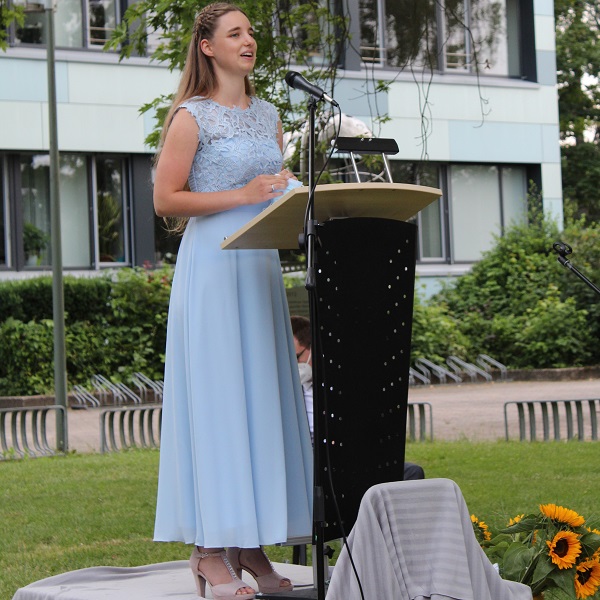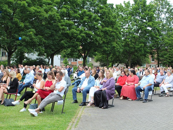 Die festliche Verabschiedung der Abiturientia fand am Freitag, den 25. Juni, am Abend, wie bereits im letzten Jahr, auf der Wiese vor der Schule statt.