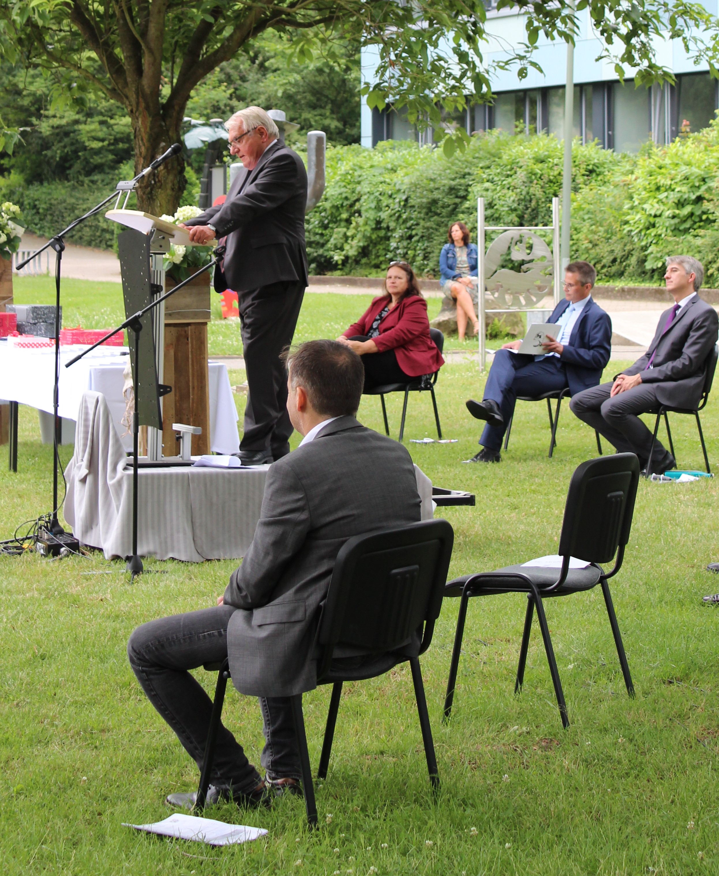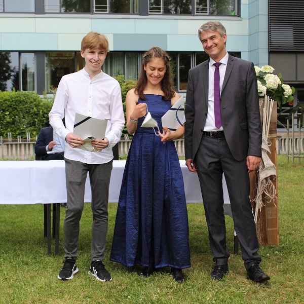 Bürgermeister Klaus Strehl wünschte den Absolventen alles Gute für ihre Zukunft und der Vorsitzende der Schulpflegschaft Hans Schlegel betonte seine große Freude darüber, in diesem Jahr die Abiturient*innen persönlich verabschieden zu können. Im letzten Jahr musste coronabedingt auf Gastreden verzichtet werden.