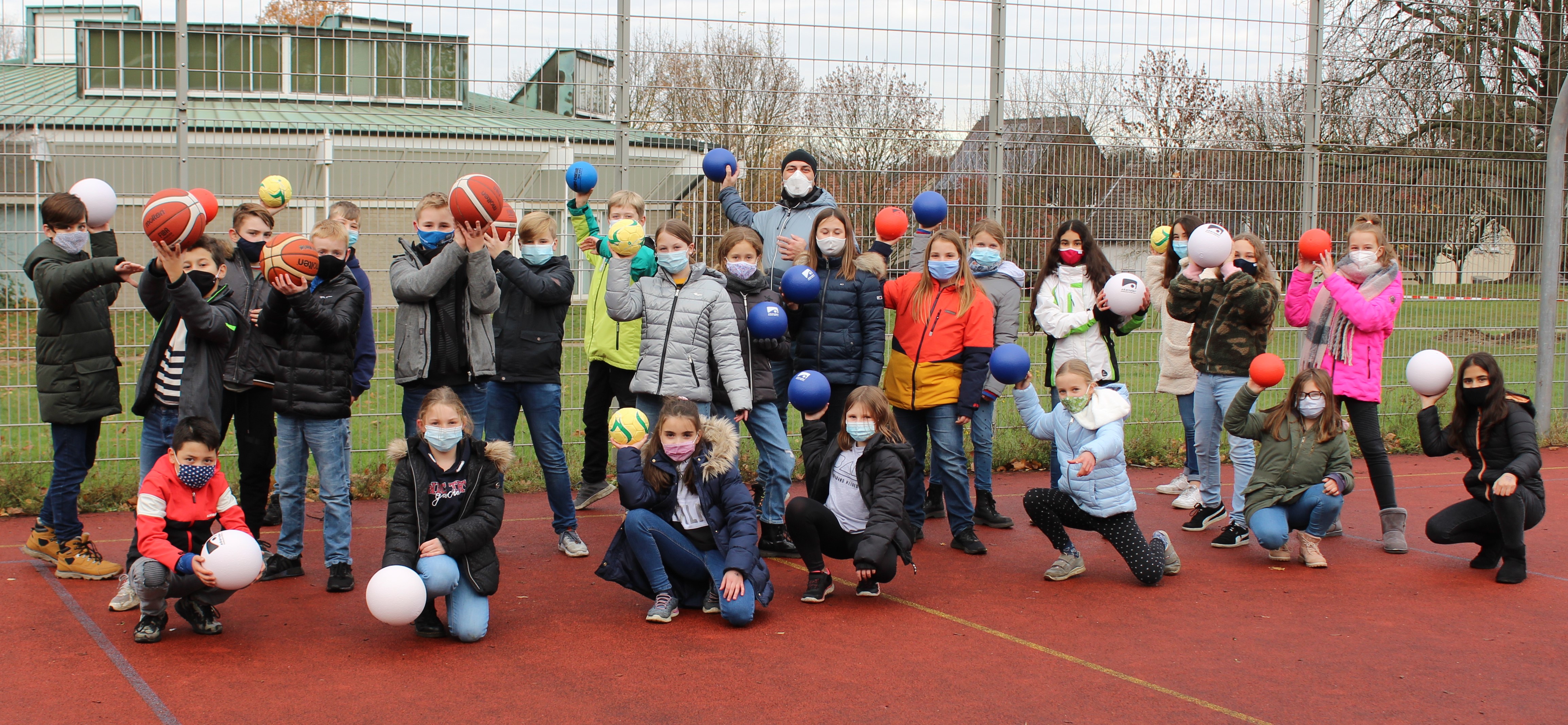 Stellvertretend für das HHG nahm die Klasse 5d mit Sportlehrer und Initiator der Aktion Horst Liß die Materialien für den Sportunterricht mit Vorfreude auf eine baldige Benutzung in Empfang.