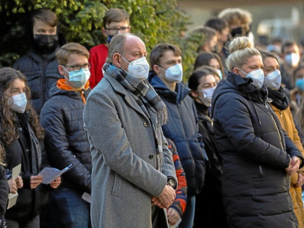 Generationen in Deutschland kannten Krieg nur noch aus Erzählungen ihrer Eltern, Großeltern oder Urgroßeltern, meinte Oberbürgermeister Bernd Tischler, der spontan an der Antikriegsdemonstration an dem Gymnasium teilnahm. „Das hat sich mit dem Angriff auf die Ukraine geändert und macht uns verständlicherweise Angst“, sagte Tischler. Viele Menschen in der Ukraine hätten ihr Hab und Gut verloren und harrten in zerstörten Städten in Kellern und U-Bahnschächten aus. Viele Familien seien getrennt, weil Frauen und Kinder vor dem Krieg fliehen, während die wehrpflichtigen Ehemänner und Väter das Land nicht verlassen dürfen.