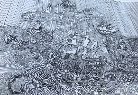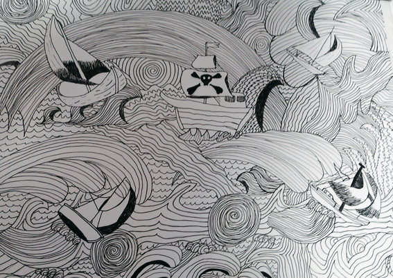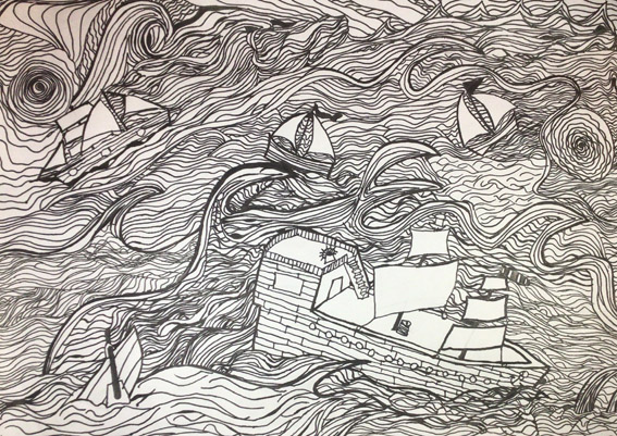 Kapitän Morhock gelang es gerade noch die Alarmglocke zu schlagen und schon schlugen Wellen von ungeahnter Größe über dem Schiff zusammen – mitten im Sturm. Die „Albatros“ wurde von den Wellen wie ein Spielball hin und her geworfen, sekundenlang befand sich das Deck unter Wasser. Kapitän Morhock konnte sich nur mit Mühe am Steuerrad festhalten, hinter der nächsten großen Welle sichtete er plötzlich vier weitere Schiffe, die vom Orkan mitgerissen wurden. Würden sie den Kampf um Leben und Tod überstehen???