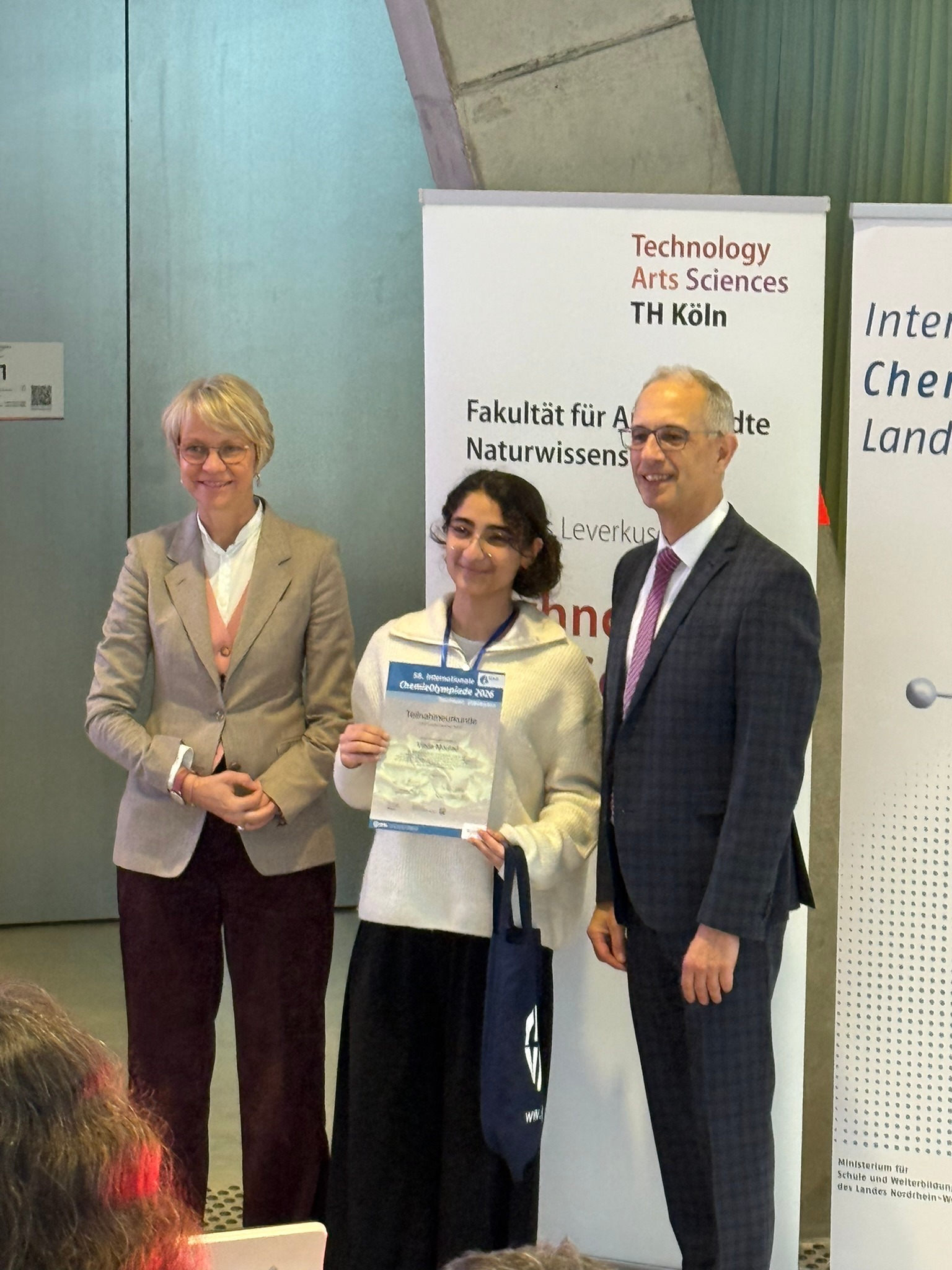Für diesen besonderen Erfolg wurde Vinda im Rahmen einer Feierstunde geehrt. Schulministerin Dorothee Feller würdigte die Leistungen der ausgezeichneten Schülerinnen und Schüle persönlich – die Ehrung fand am 11.02.2026 an der TH Köln am Campus Leverkusen im Zusammenhang mit dem NRW-Landesseminar der IChO statt.