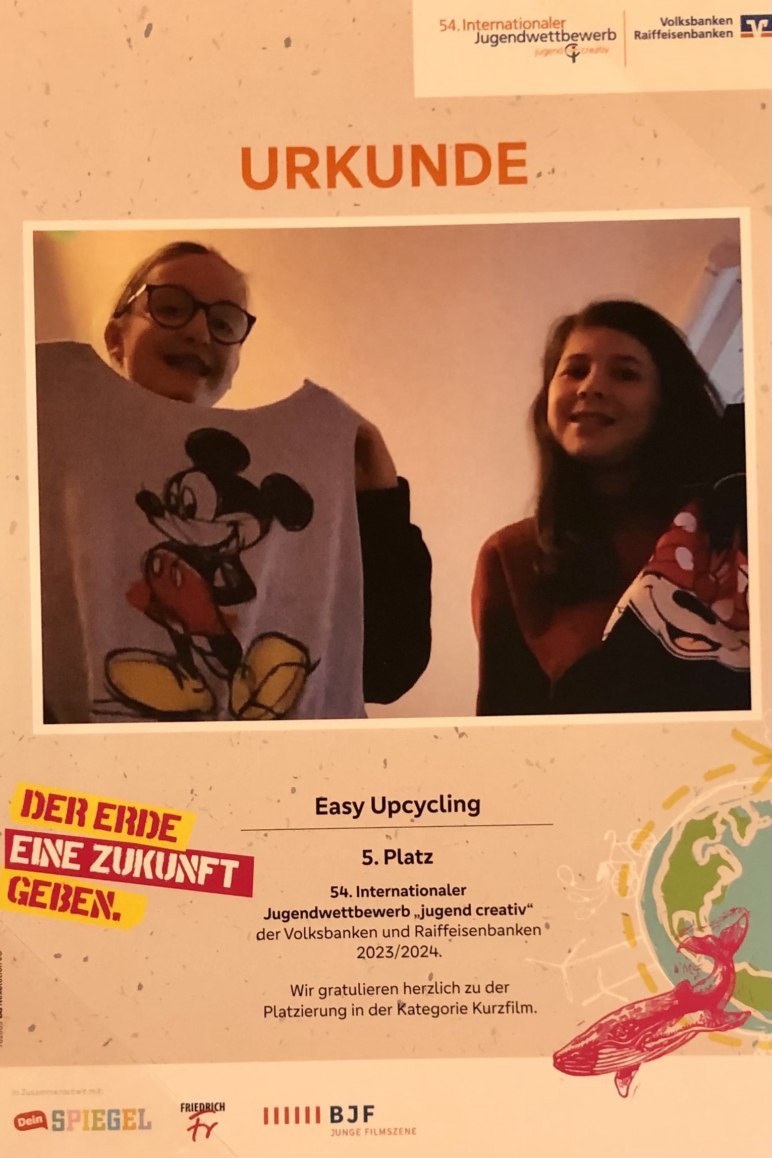 Sie haben zum Thema „Der Erde eine Zukunft geben“ einen Kurzfilm zum Thema „Easy Upcycling- Ideen zum einfachen Nachmachen“ gedreht.