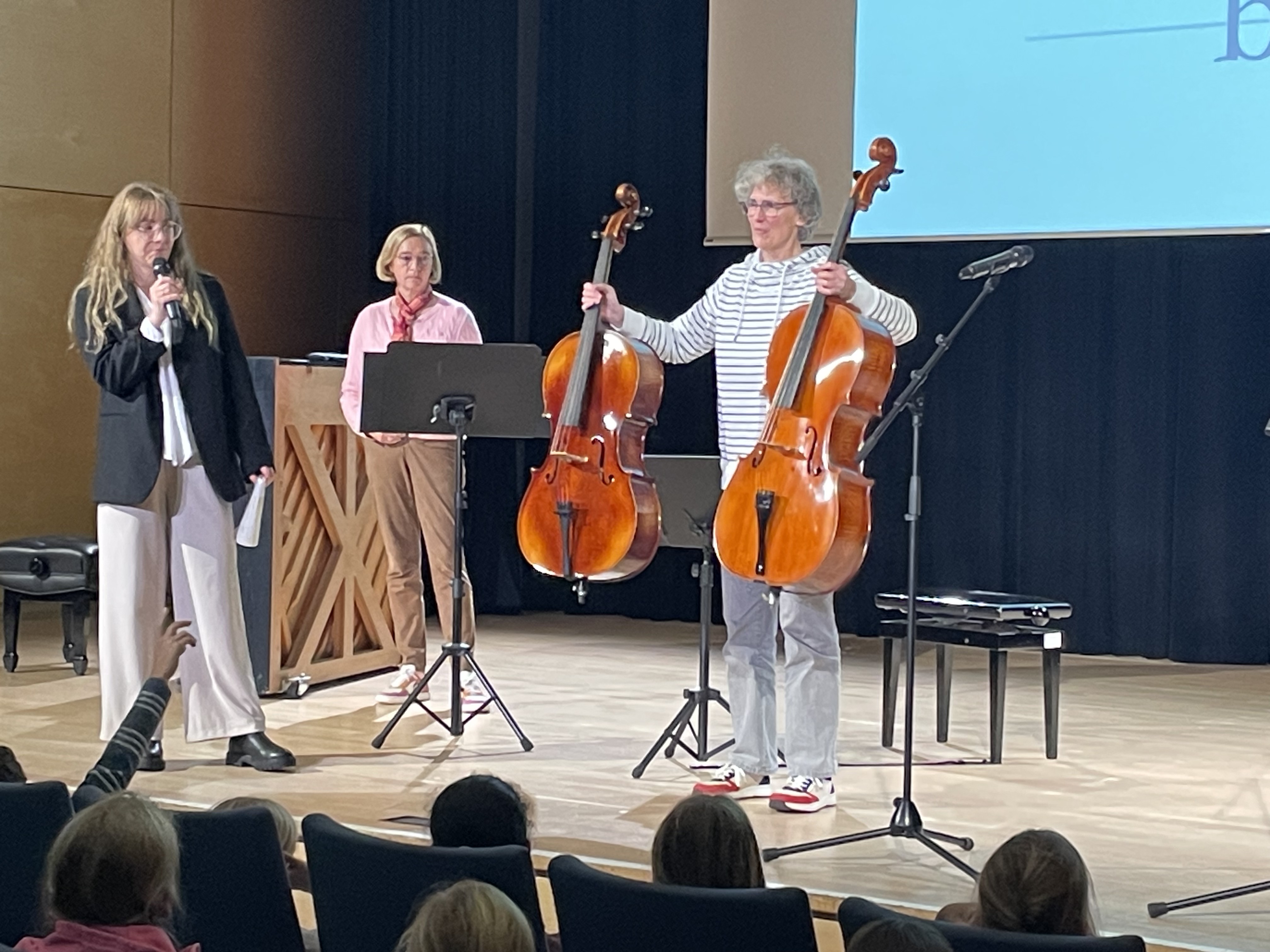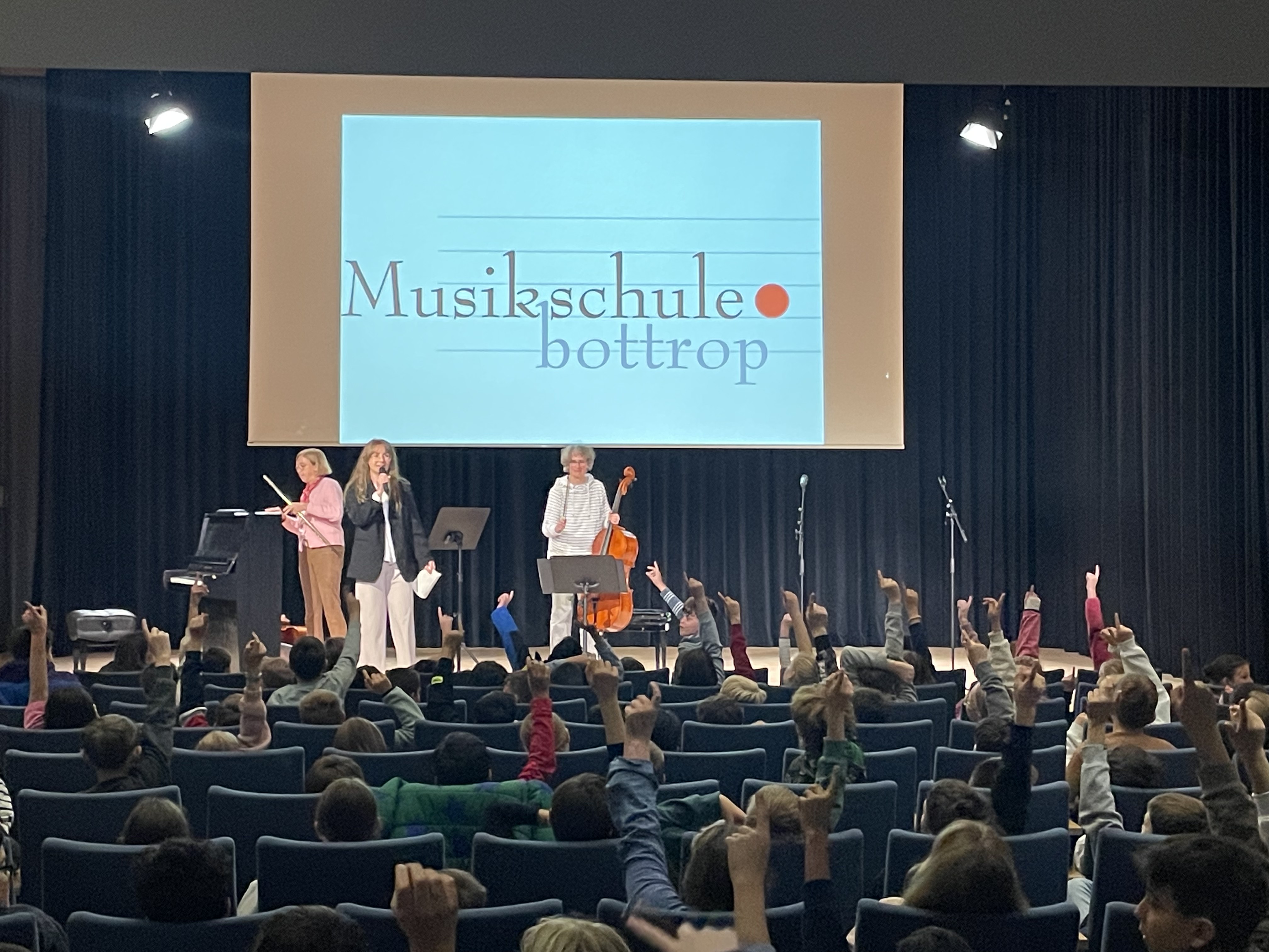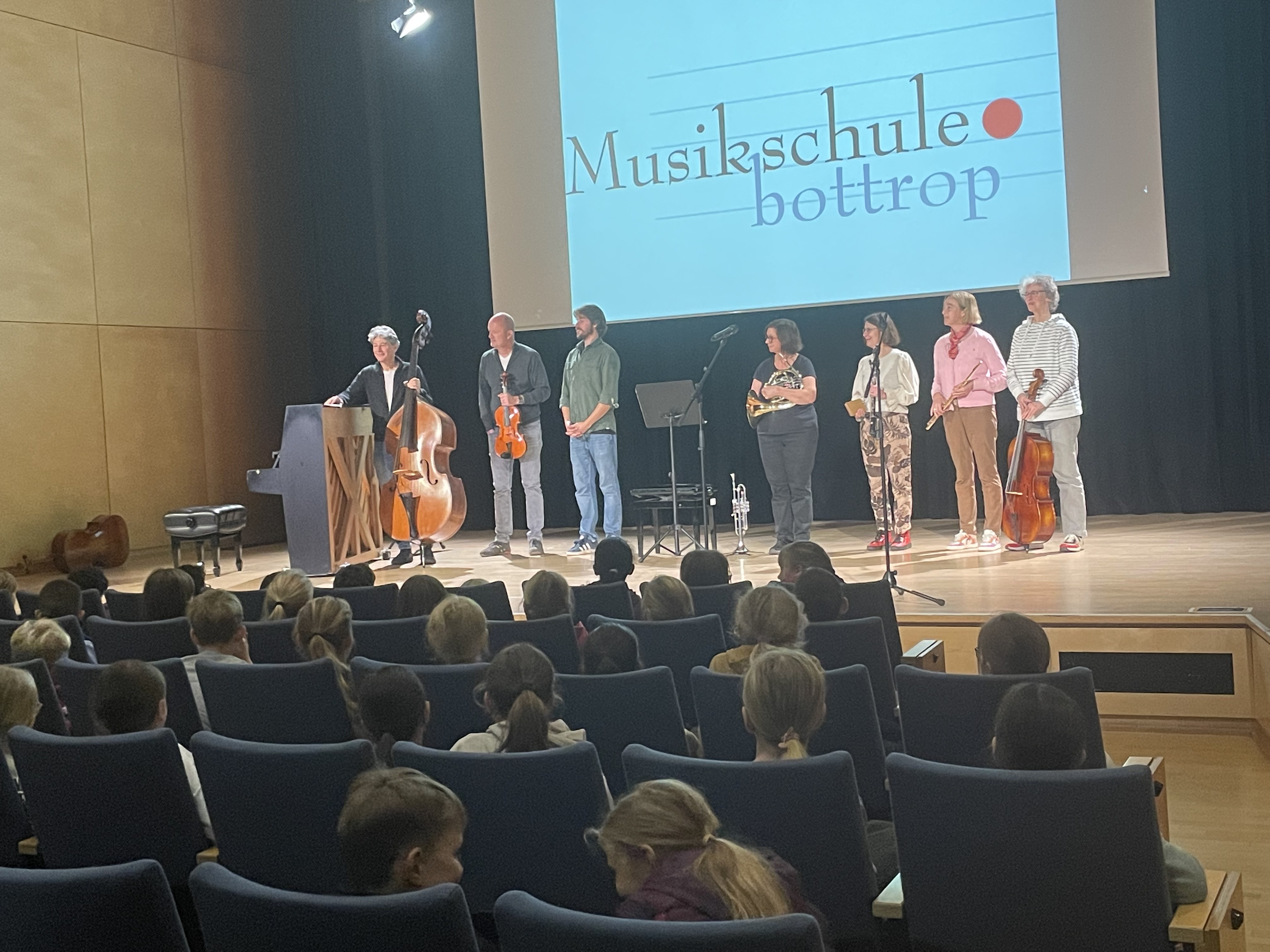 Anschließend hat sich die gesamte Jahrgangsstufe 5 auf Instrumenten-Entdeckungsreise in den Kammerkonzertsaal des Kulturzentrums begeben. Die Dozentinnen und Dozenten der Musikschule haben uns traditionsgemäß in einem tollen Konzert das Klangspektrum und die Spielweise der unterschiedlichen Instrumentenfamilien nähergebracht.