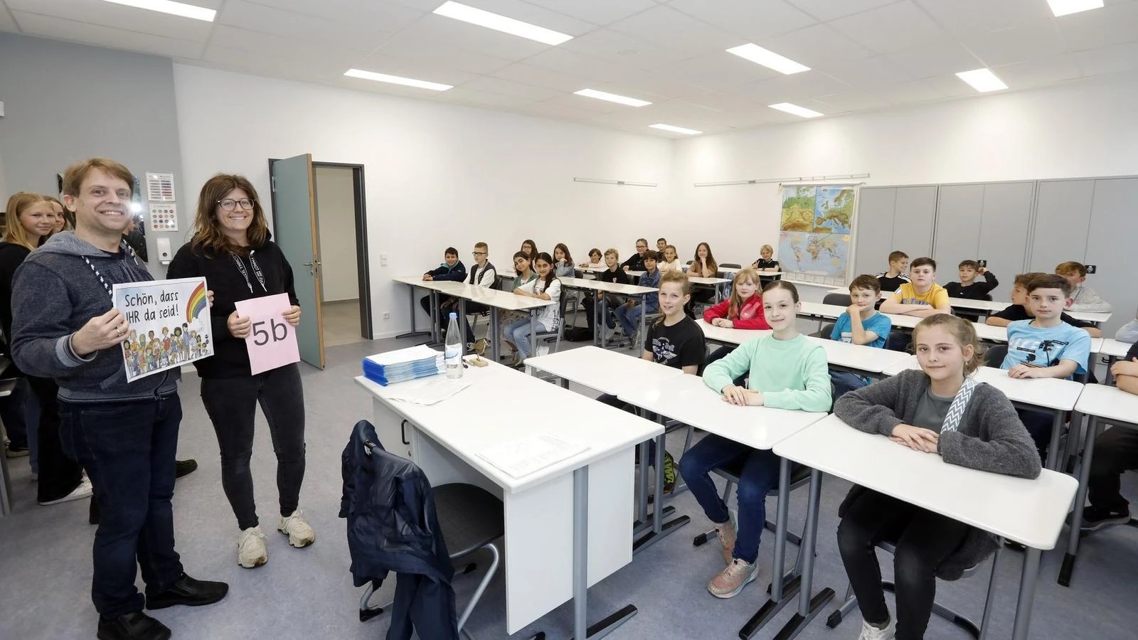 Auf 600 Quadratmetern, verteilt auf zwei Etagen, stehen den künftigen Fünftklässlern zum neuen Schuljahr insgesamt fünf Klassenräume zur Verfügung. Die jetzt (Noch)-Viertklässler durften beim Kennenlern-Tag schon einmal „ihre“ neuen Mitschüler begrüßen und das neue Gebäude C betreten.