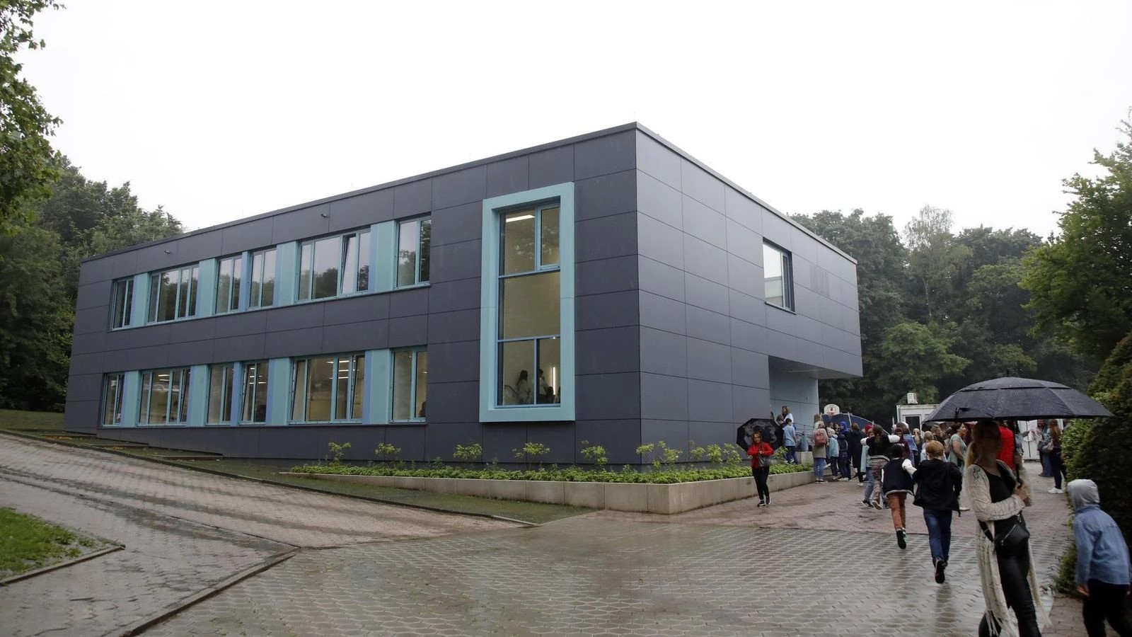 Die offizielle Einweihung fiel ins Wasser – im wahrsten Sinne des Wortes. Anstatt eines erhofften Sonnenscheins schüttete es aus Eimern vom Himmel. Kurzerhand schnitt Schulleiter Tobias Mattheis selbst das offizielle Band durch.