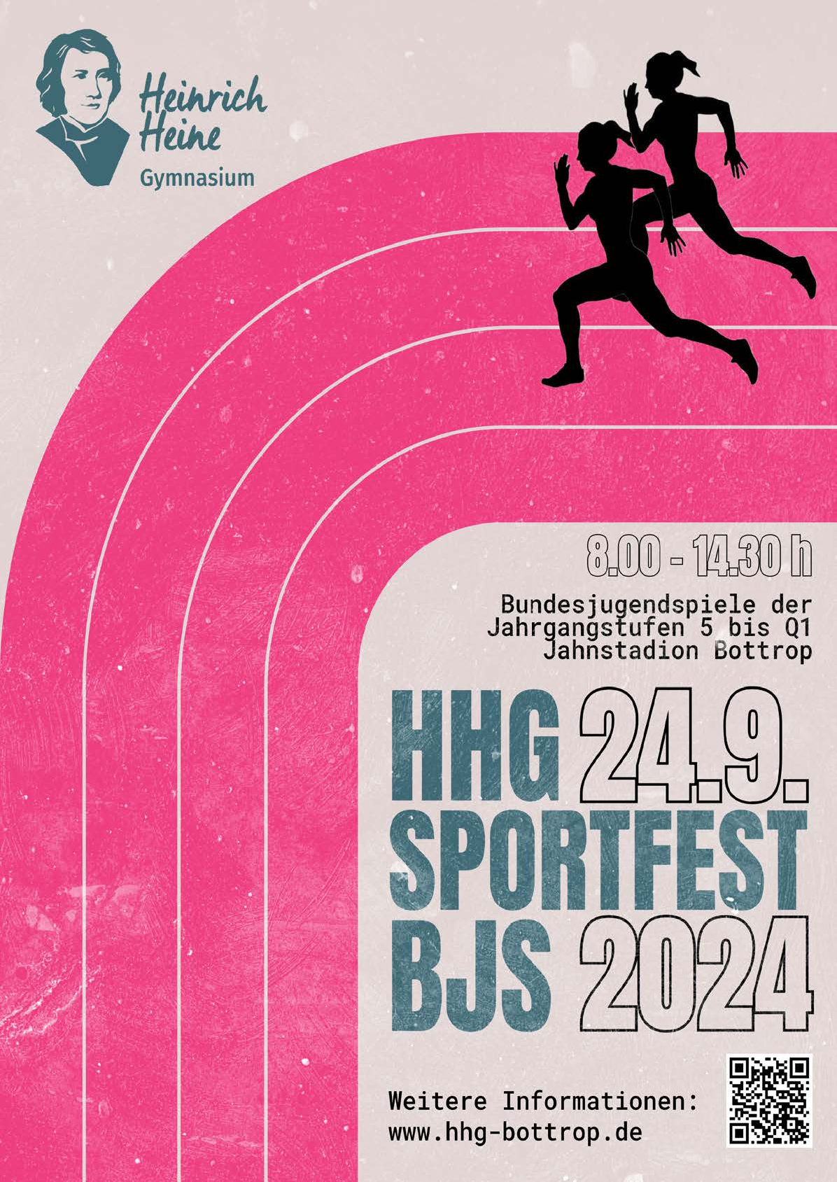 am Dienstag, 24.09.24, findet das „HHG-Sportfest“ statt. Da wir einen straffen Zeitplan für fast 1000 Teilnehmende einhalten müssen, seid ihr unbedingt pünktlich um 8:00 Uhr vor Ort und begebt euch bitte direkt zum Versammlungsort eurer Klasse oder eures Kurses unter dem Tribünendach oder auf der Rasenfläche! Legt bitte dort eure Taschen ab. Ihr werdet an eurem Versammlungsort von Oberstufenschülerinnen und -schülern erwartet, die eure Klasse während des gesamten Tages begleiten und dafür sorgen werden, dass ihr immer pünktlich bei eurem nächsten Wettkampf seid. Sie kontrollieren zunächst eure Anwesenheit und geben euch eine Stempelkarte für die „Alternativwettkämpfe“, die ihr euch um den Hals hängen oder in euren Taschen verstauen könnt. Anschließend dürft ihr euch selbstständig aufwärmen, wie ihr es im Sportunterricht besprochen und geübt habt.