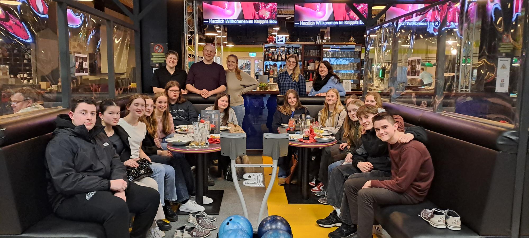Am 17.03. war es so weit - gegen Abend holten wir unsere schwedischen Austauschschüler in Bottrop am Hauptbahnhof ab, um ihnen anschließend ihr Zuhause für die nächste Woche zu zeigen. Der erste gemeinsame Schulbesuch fand direkt am nächsten Morgen statt und unsere Partner erhielten das erste Mal einen Einblick in den deutschen Schulalltag. Noch am selben Tag gingen wir dann abends gemeinsam Bowling spielen und lernten uns als Gruppe kennen.