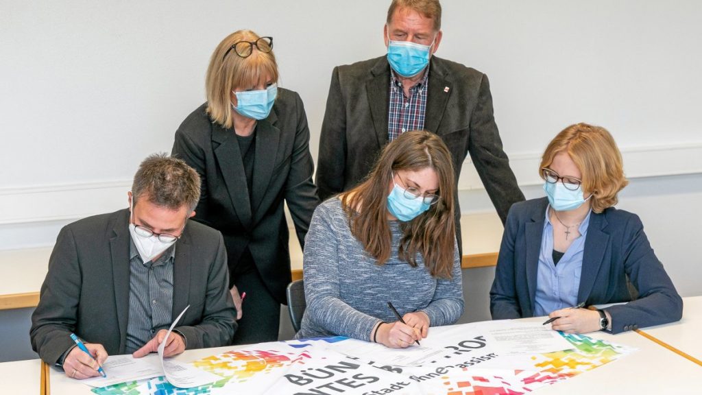 Angeregt hat diese Kooperation, die jetzt vom HHG und dem Zweitzeugenverein offiziell für die nächsten drei Jahre besiegelt wurde, übrigens das Bündnis Buntes Bottrop, das mit Mitteln der hiesigen Egon-Bremer-Stiftung und aus dem Topf der Landesbeauftragten für Antisemitismus, Gabriele Leutheusser-Schnarrenberger, finanziell gefördert wird.