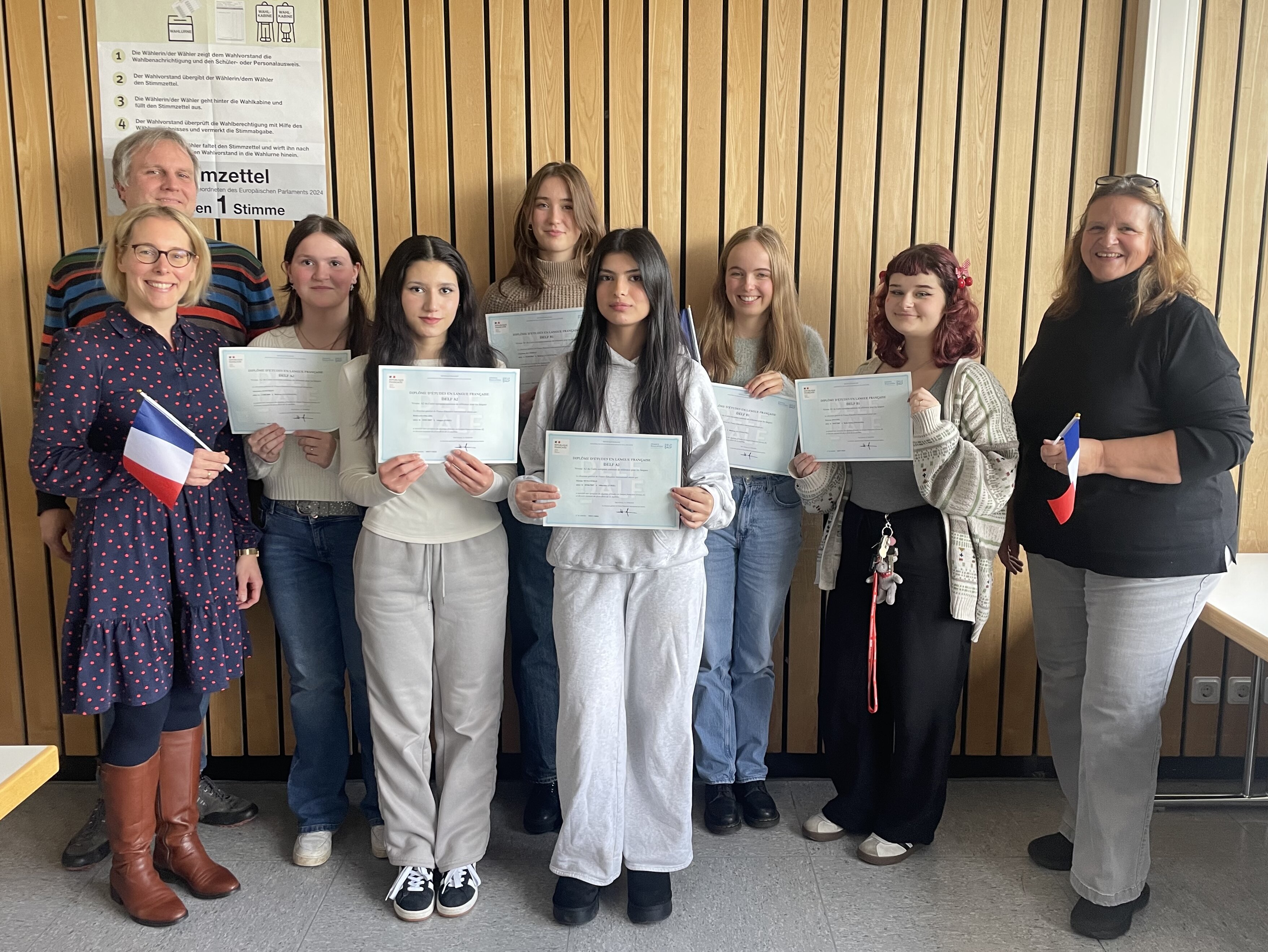 Über die erfolgreich bestandenen Prüfungen freut sich die Fachschaft Französisch sehr und gratuliert allen herzlich und hofft, dass die Schülerinnen und Schüler weiterhin so motiviert und voller Freude der Sprache begegnen.