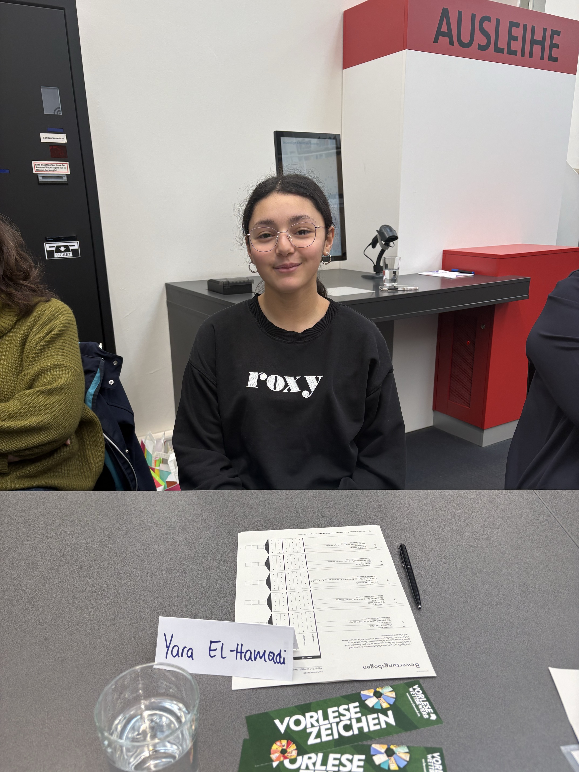 Ariella Thomeczek (6a) konnte sich gegenüber Leserinnen und Lesern anderer Bottroper Schulen behaupten und belegte den ersten Platz! Nun wird sie das HHG auf Bezirksebene vertreten. Yara El Hamadi (7c), die Vorjahressiegerin, durfte in diesem Jahr die Jury unterstützen.