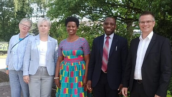 Kurz vor den Sommerferien hatten das Heinrich-Heine-Gymnasium und der Förderverein Hope Nursery School Besuch aus Ruanda: Bischof Dr. Pascal Bataringaya, seine Frau Louise Uwimana und Vorstandsmitglieder des Fördervereins haben Schulleiter Tobias Mattheis auf den aktuellen Stand des Kindergarten-Projekts gebracht und weitere Aktivitäten vereinbart.