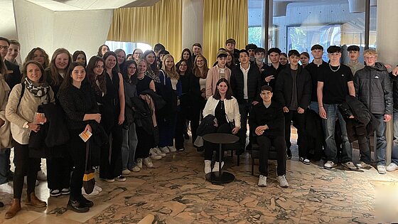 Im Rahmen der Unterrichtsreihe zu Dürrenmatts Drama "Der Besuch der alten Dame" haben die Schülerinnen und Schüler der Klassen 9a und 9d gemeinsam mit ihren Deutschlehrerinnen Frau Strelzik und Frau Morsbach am 23.04.2024 eine abendliche Aufführung im Schauspielhaus Düsseldorf besucht.