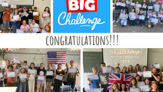 Gratulation an die 154 Schüler/-innen der Klassen 5 bis 7 für ihre erfolgreiche Teilnahme am Englischwettbewerb „The Big Challenge“.