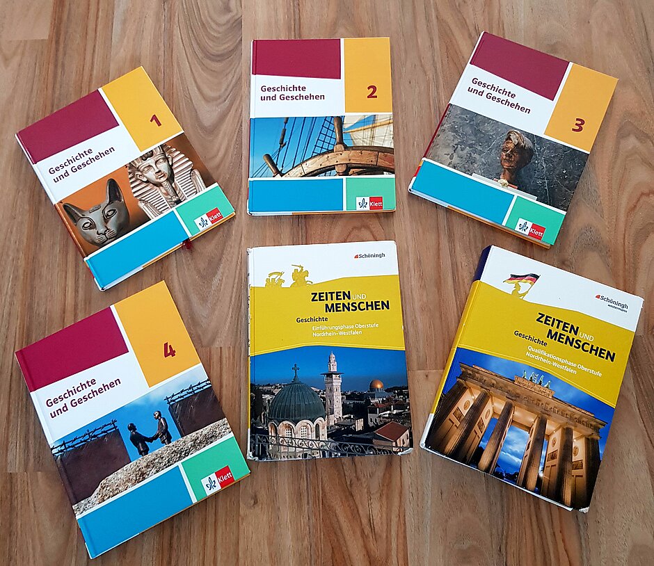 In der Sekundarstufe I ist aktuell die Lehrwerkreihe Geschichte und Geschehen (Klett-Verlag) eingeführt. Jede Klasse hat einen Klassensatz von Schulbüchern.