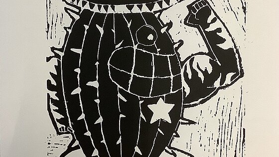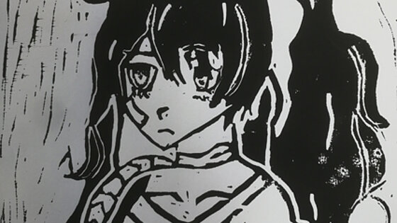 Die Schülerinnen und Schüler der Klasse 7d erstellten Porträts mit charakteristischen Merkmalen des Mangas. Die Zeichnung wurde in eine Linoldruckplatte eingeritzt, um anschließend einen Druck davon zu erstellen!