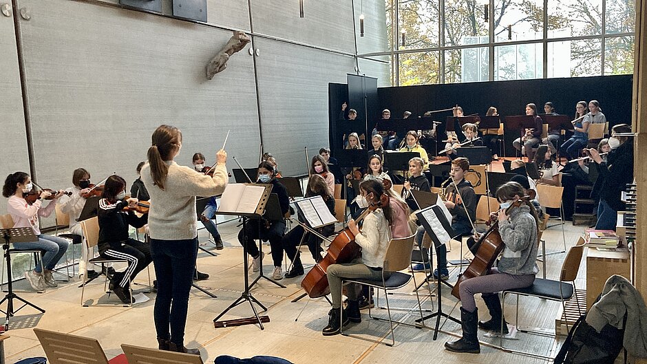 - Der Orchesterkurs zeigt am Tag der offenen Tür in einer offenen Probe, wie in der Profilklasse „Orchesterkurs“ gearbeitet wird