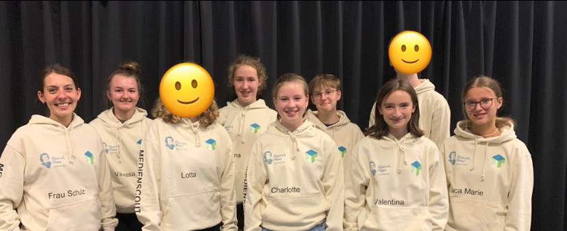 WIR - das sind momentan 12 Schüler/-innen der Jahrgangsstufen 8 bis 10, weiterer Medienscouts-Nachwuchs der Jahrgangsstufe 7 und unsere betreuende Lehrkraft Frau Schulz- sind die Medienscouts am Heinrich-Heine-Gymnasium.