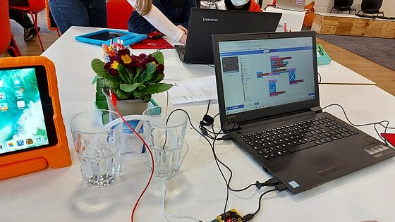 In der letzten Woche haben sich drei 5. Klassen in Begleitung ihrer naturwissenschaftlichen Lehrkräfte auf den Weg nach Düsseldorf gemacht, um mit Unterstützung der Initiative „Coding for Tomorrow“ für Pflanzen eine automatische Bewässerungsanlage mit Feuchtigkeitsmesser und Wasserpumpe zu bauen.