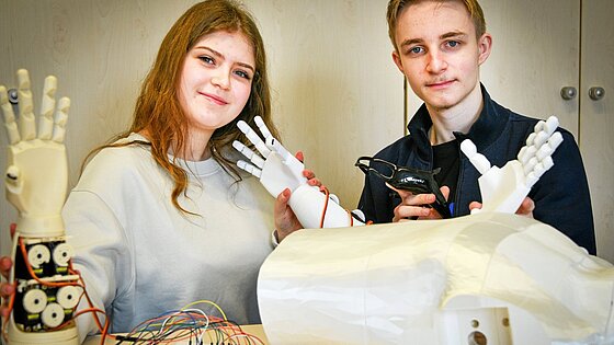 Bottroper Schüler steuern selbst gebaute Hand per Gedanken